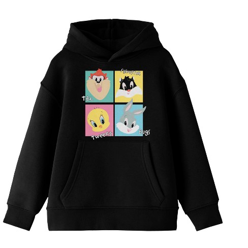 Youth Boys Looney Tunes Chibi Characters Color Block Black Hooded Sweatshirt Target